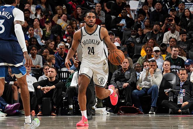 本场比赛中,篮网虽然又一次输掉了比赛,但是球队的先发得分后卫卡姆-托马斯(Cam Thomas)的表现还是能够保持在一个较高的水准。托马斯全场出场34分39秒,投篮24中10,三分线外4中1,罚球5中4,得到了全场最高分25分外加2篮板3助攻2抢断,还有1次失误和3次犯规,正负值为-13。托马斯在进攻端依然是得到了大量的出手机会,他也是通过各种方式得到了不少分数,为球队提供了不少支持。在其他球员表现平平得分能力不足的情况下,篮网依然是靠着托马斯的努力得到了不少分数。托马斯在其他方面的能力比较一般,但是至少他还是能够吃下大量的球权并且在进攻端起到关键性的作用的。要不是有托马斯超强的得分能力和球权消化能力,篮网显然会在本场比赛中输得更惨。