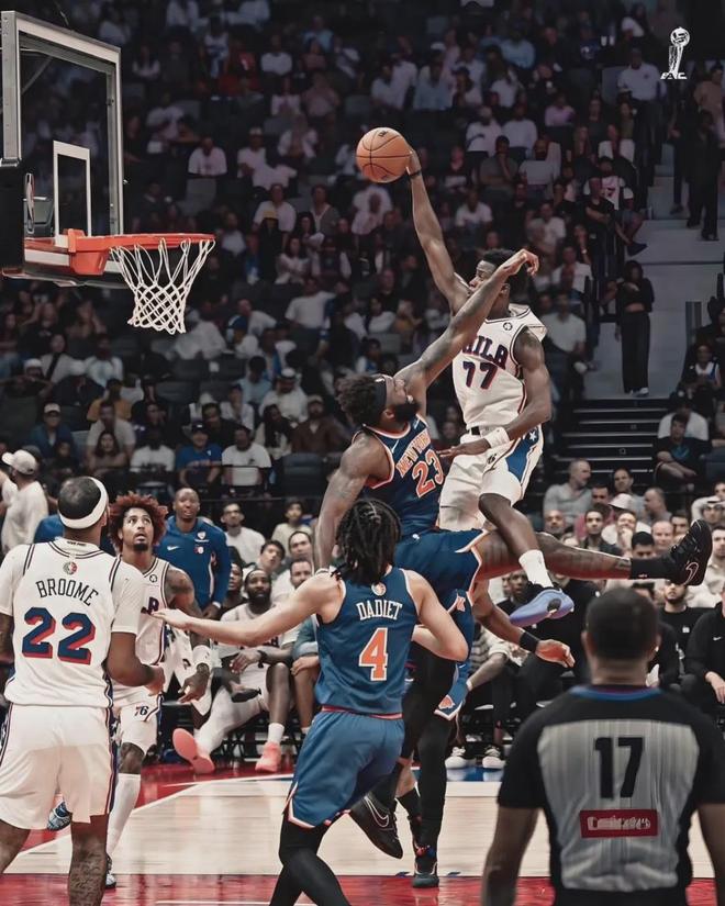 探花秀埃奇库姆为76人打了6场比赛,均是首发。场均出战39分钟,得到20.3分5篮板5助攻1.5抢断2失误,三项命中率:49.5%,42.1%,82.4%。场均正负值+6.8,联盟第36位。场均得分、助攻和抢断,均是2025届新秀第一名。