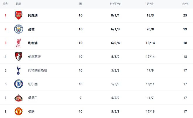在积分榜上,阿森纳依然是稳居榜首位置。阿森纳战绩是8胜1平1负,拿到25分。阿森纳不仅仅进攻做得很好,更惊艳的是防守。10轮联赛阿森纳竟然只丢了3球,是英超球队中丢球最少的。丢球第2少的是桑德兰,丢了7球。阿尔特塔让阿森纳的防守如此完美,这让任何对手都感到非常头疼,不知如何撕开阿森纳的钢铁防线。
