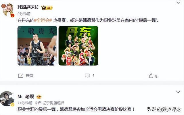 然而,仅仅一个月时间,辽宁男篮官宣送别了韩德君后,有消息称,辽宁体育局希望韩德君复出,代表辽宁男篮出战全运会阶段的比赛。