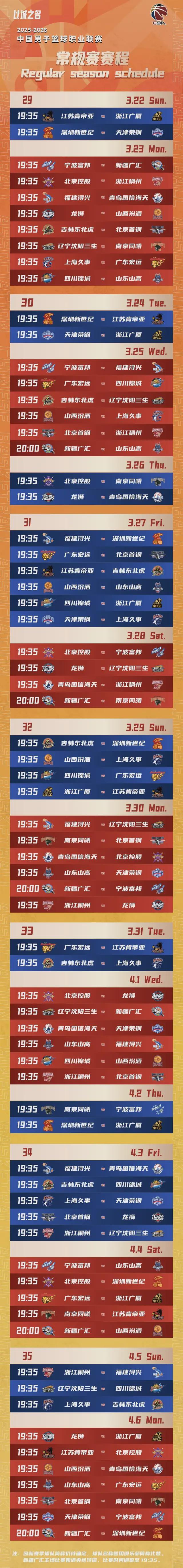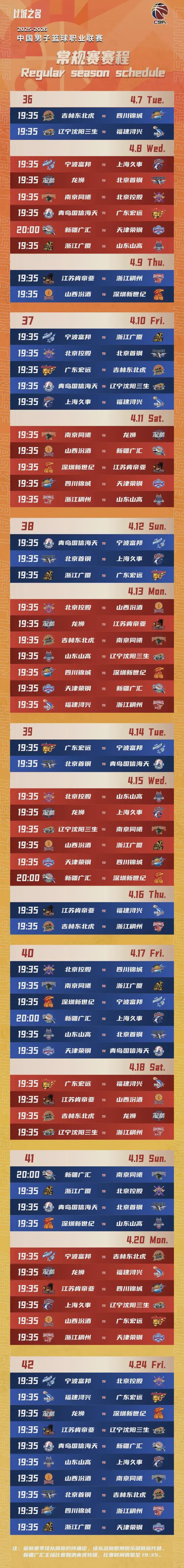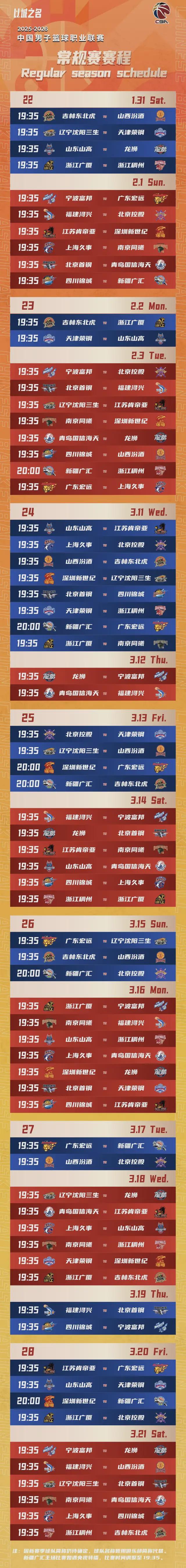 新赛季CBA常规赛赛程出炉,请一键收藏!