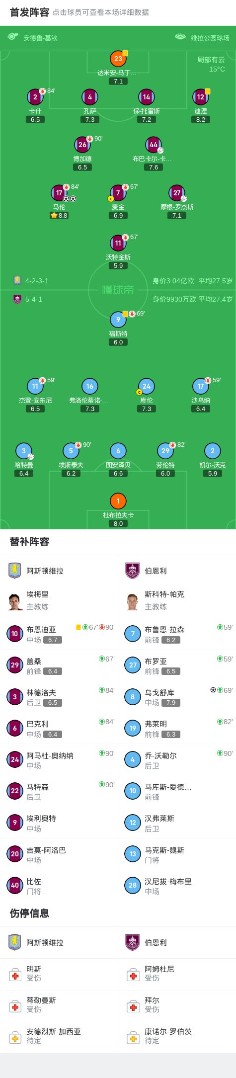第25分钟,马伦禁区单刀铲射远角破门,维拉1-0伯恩利
