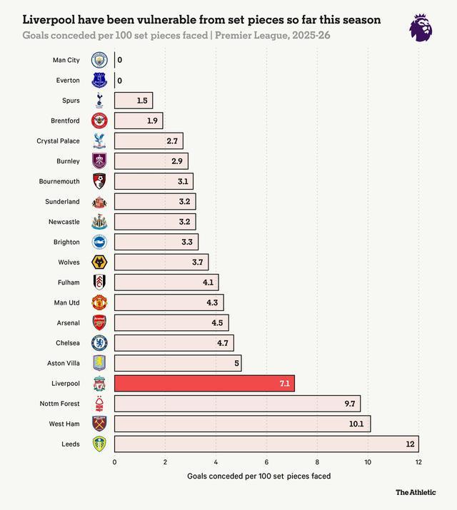 TA:利物浦定位球是弱点,他们要避免1953年以来首次五连败